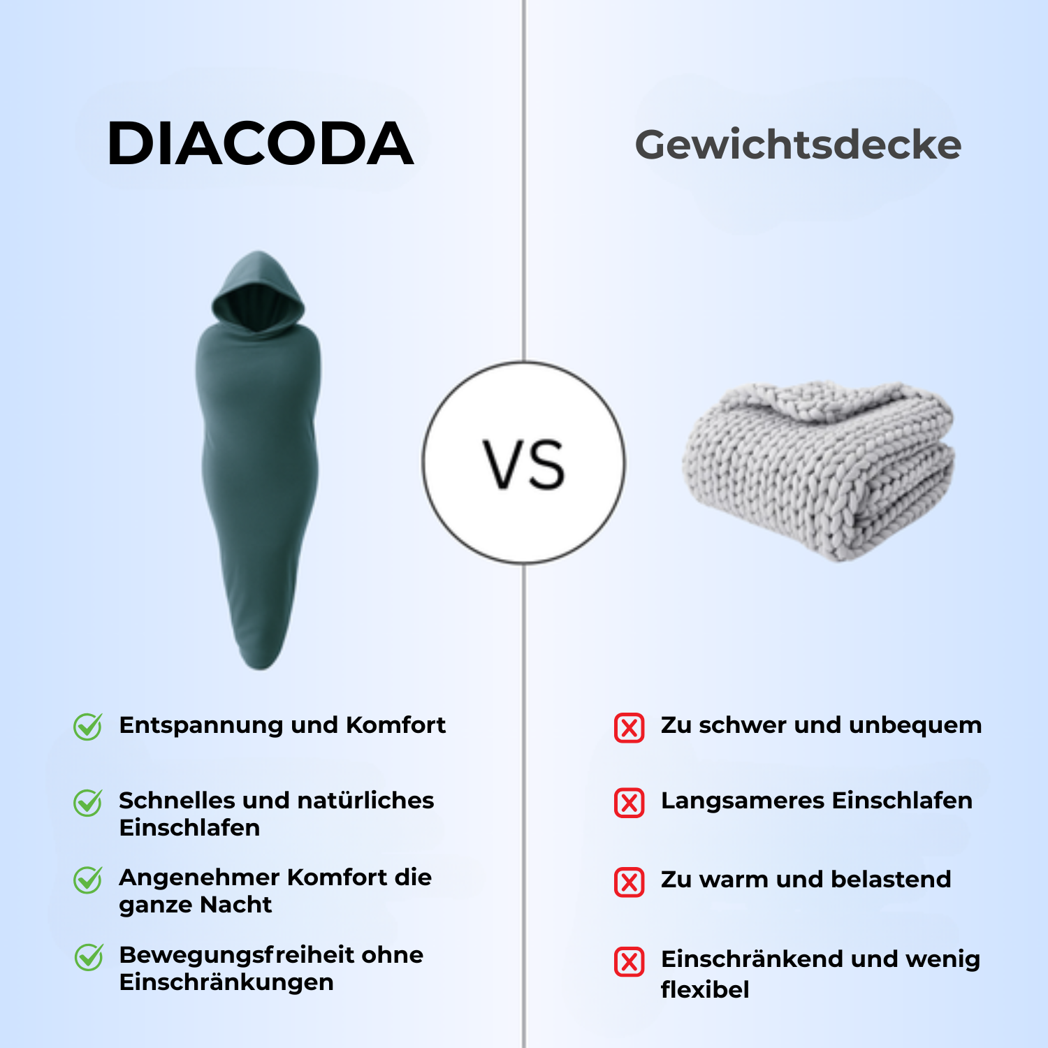Der Körper ist müde, aber der Kopf bleibt aktiv. Der Diacoda SchlafKokon schafft ein beruhigendes Cocoon-Gefühl, das hilft, Anspannung loszulassen und leichter zur Ruhe zu kommen.