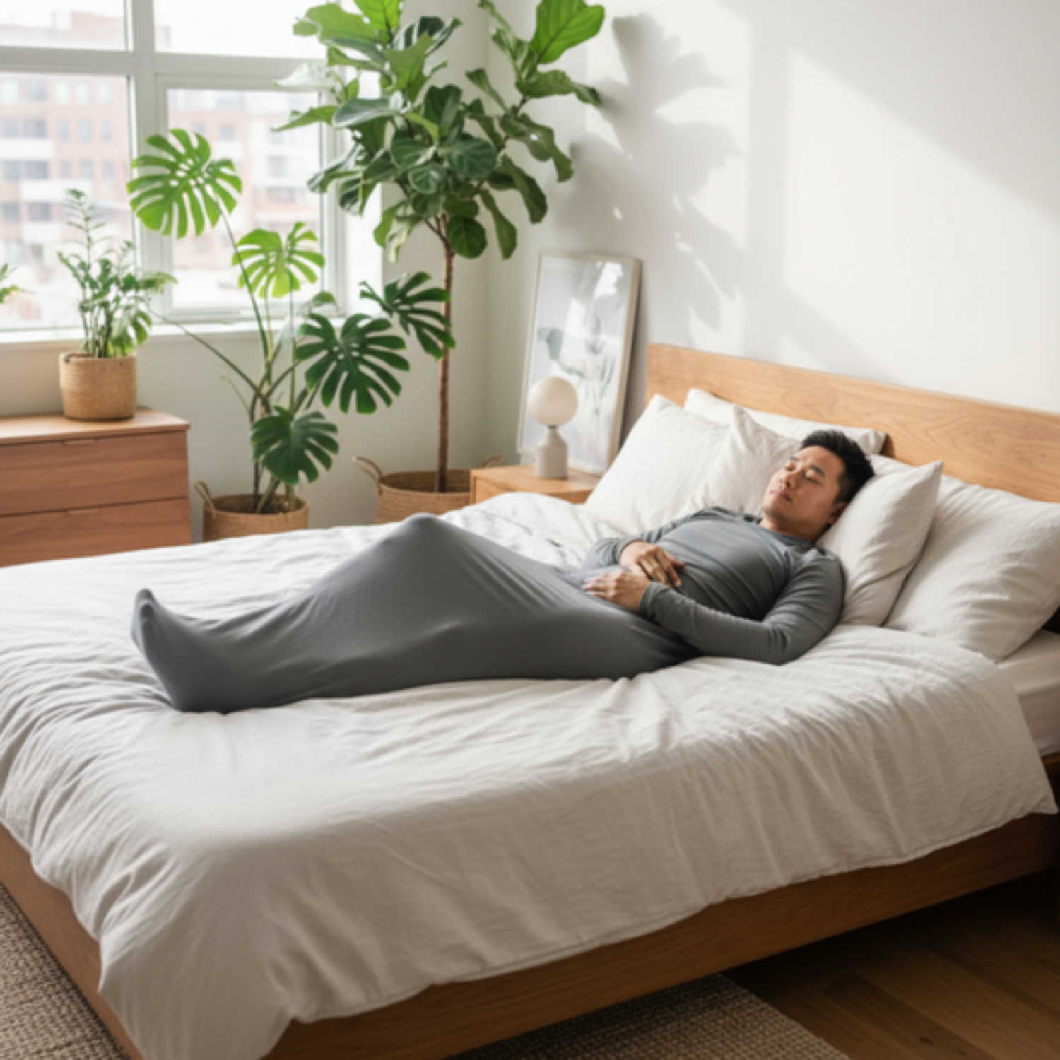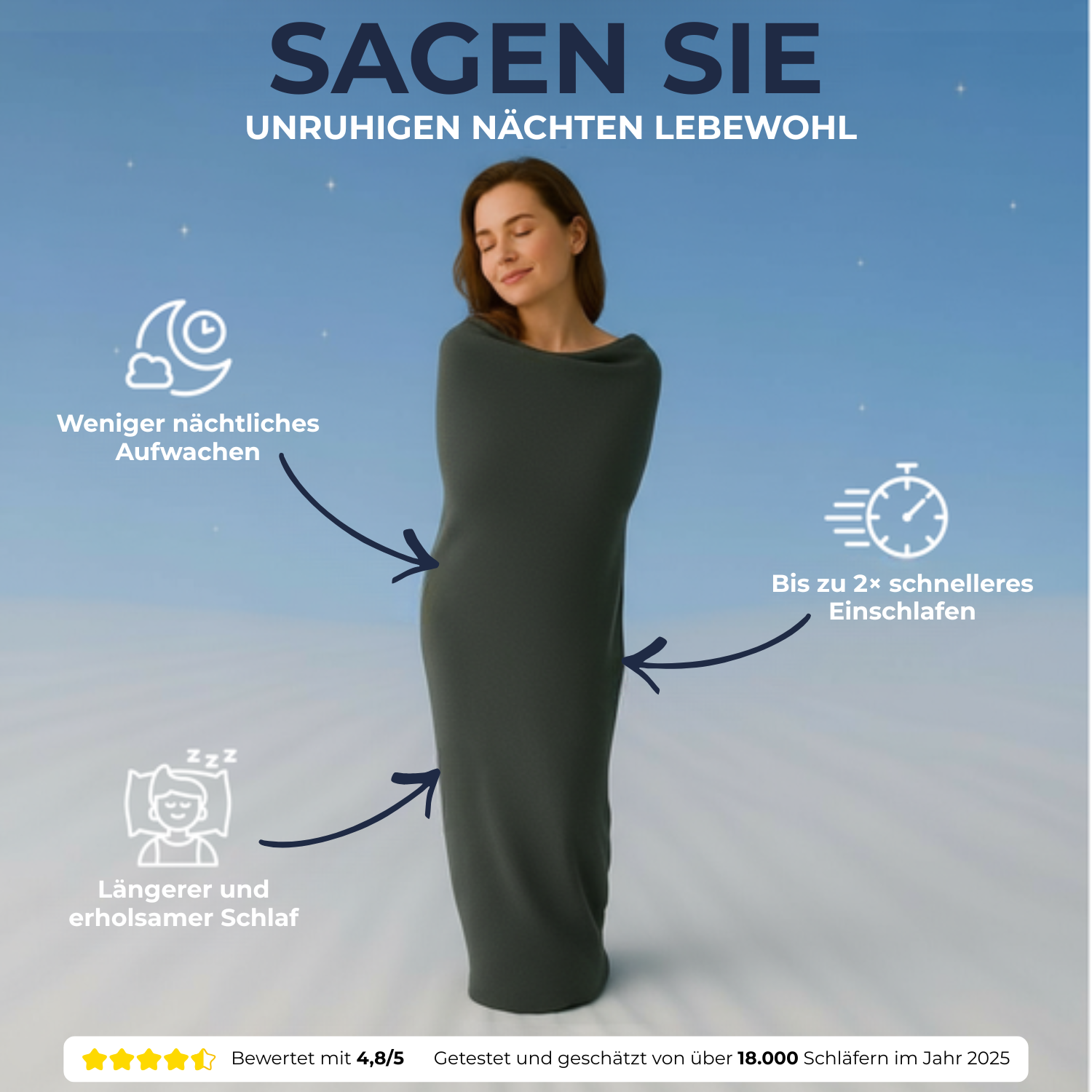 Sanfte, gleichmäßige Umhüllung, ohne starres Gefühl. Atmungsaktiv und angenehm, damit Sie sich geborgen fühlen, ohne Hitzestau oder Engegefühl.