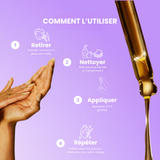 - Appliquez 3 à 5 gouttes du sérum sur une peau propre et sèche.